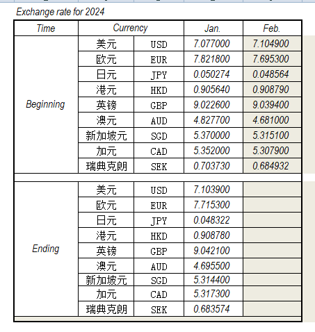 2024年1月外匯匯率,來源中國人民銀行供參考。