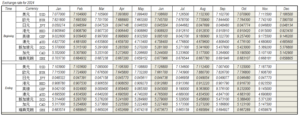 2024年11月外匯匯率,來源中國人民銀行供參考。
